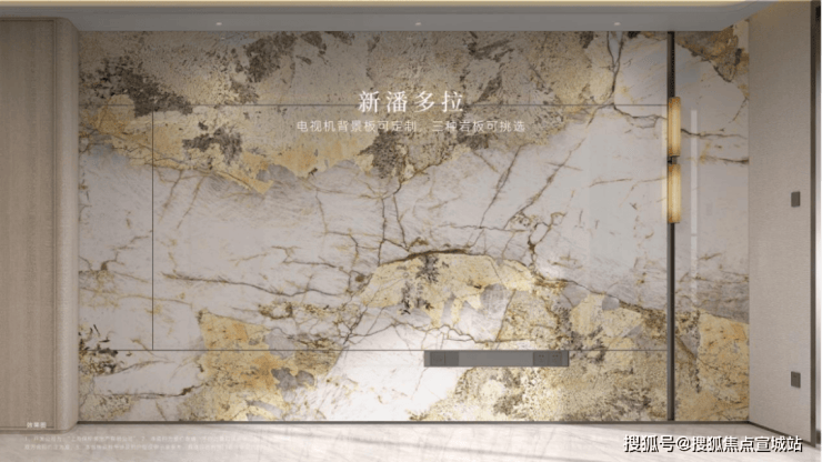 充分考虑业主的个性化需求,在电视背景板提供了新潘多拉、云中翡翠、弗朗明戈金三种结晶釉面岩板选择,成本更高,施工难度也更大.