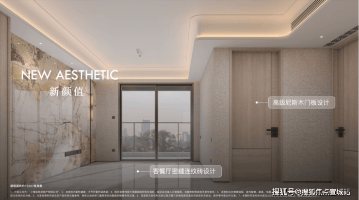 项目大量使用奢石设计,客厅四边弧形天花、主卧树叶拼花地板、精致优雅的骨骼线设计,都是开发商花费更大成本和耗材去呈现更美的视觉体验.