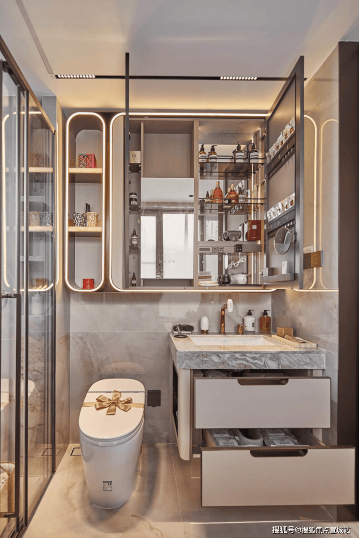 【保利天奕】关切到女性的生活需求,专门在卫生间配备了美妆龙头、美妆镜柜、美妆冰箱,采用“顶+面双补光照明”,能把“女本位”需求做到如此细致,目前没有几个项目能做到!